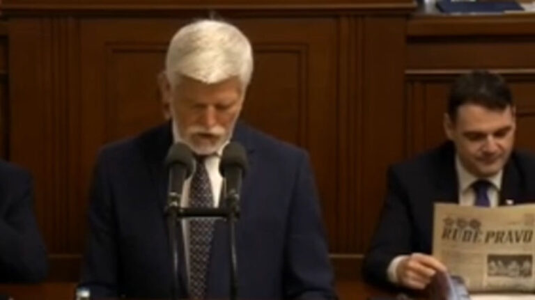 2026-03-03 20:38:00 – (pravda.sk) Macinka si počas utorkového vystúpenia prezidenta Pavla v českej Poslaneckej snemovni listoval v Rudom práve z čias komunizmu. Macinka si za chrbtom Pavla číta